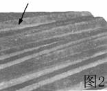 圖2中齒輪齒面的中等磨損使工作的節(jié)線變得清晰可見(箭頭所指)。這種磨損是由于潤滑油中磨料引起的。