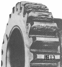 圖13麻點(diǎn)毀壞齒輪的齒面。