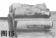 圖14中的麻點(diǎn)發(fā)生在齒根接觸處,沉重的接觸發(fā)生在麻點(diǎn)位置,因?yàn)槌d荷齒沒有正確嚙合。