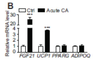 研究表明,經(jīng)過了肉桂醛的處理后,脂肪細胞里的基因表達水平出現(xiàn)了變化。不少能增強脂類代謝的基因,其表達量都有所上調。此外,他們還發(fā)現(xiàn)細胞里的Ucp1與Fgf21的mRNA水平有所上升。它們都是代謝調節(jié)類蛋白,能促使機體燃燒脂肪,產(chǎn)生熱量。
